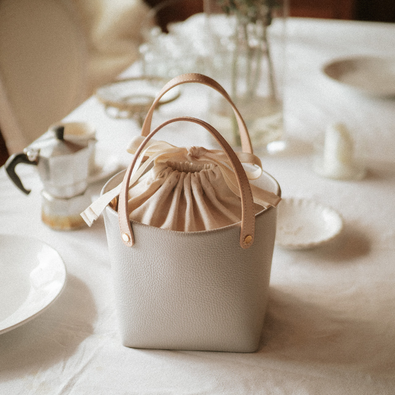 ミニマルなデザインのピクニックトート。ハンドルには、上質なヌメ革を使用。本体には、高品質なイタリアンレザー。軽やかで心地よい仕上り。