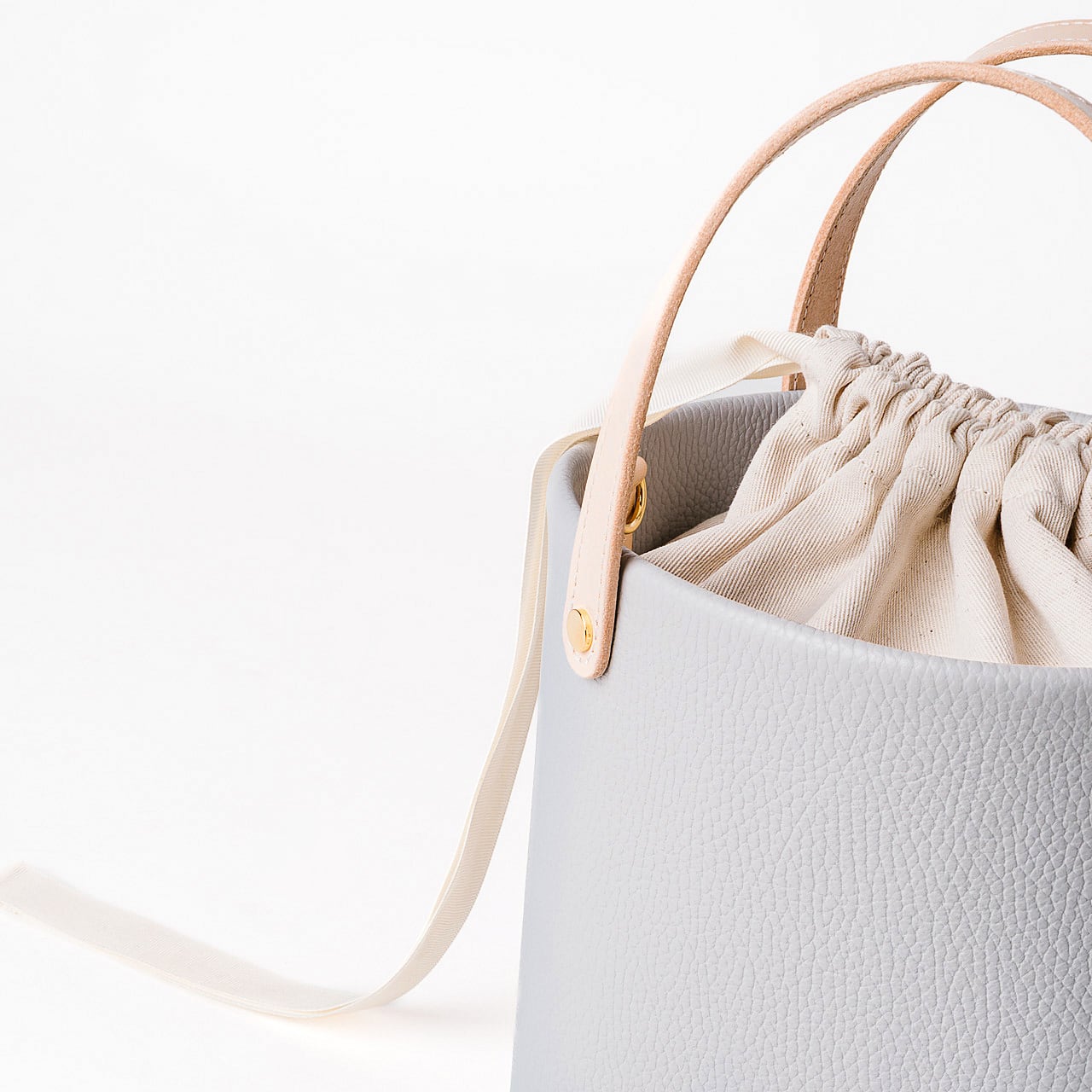 淡いグレーのレザーが、装い全体を穏やかにまとめてくれます。