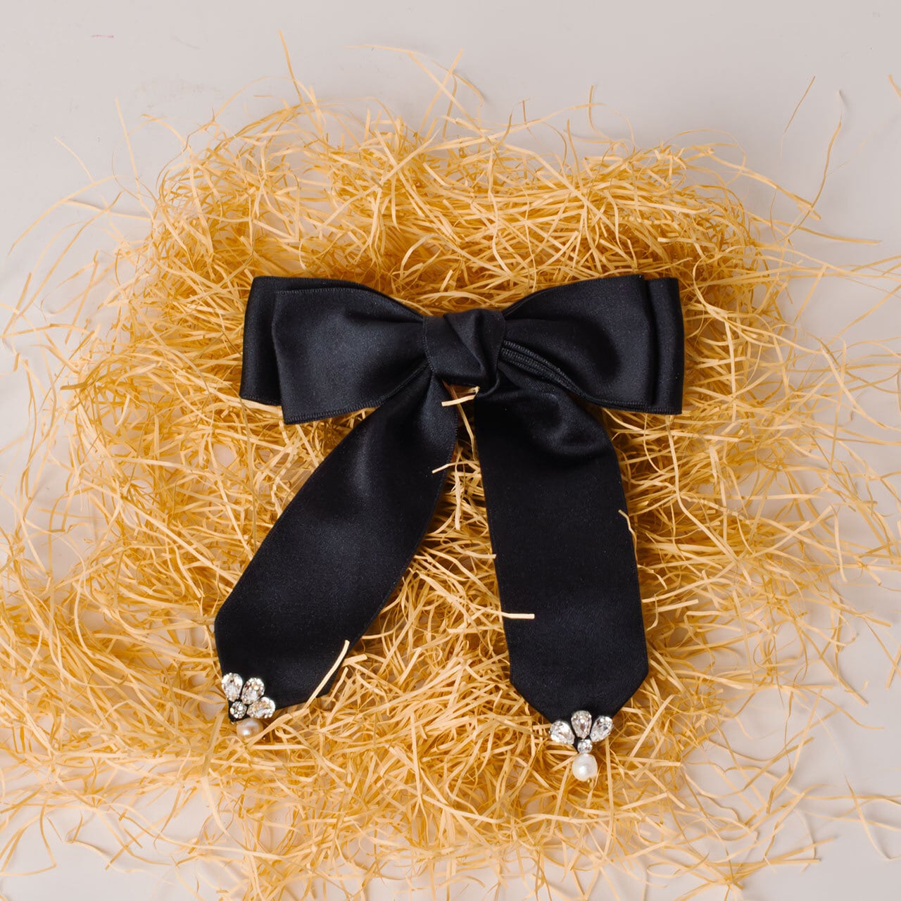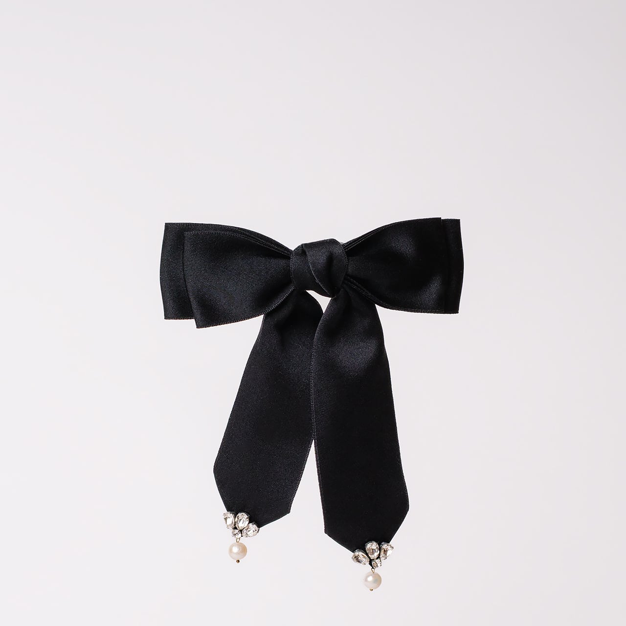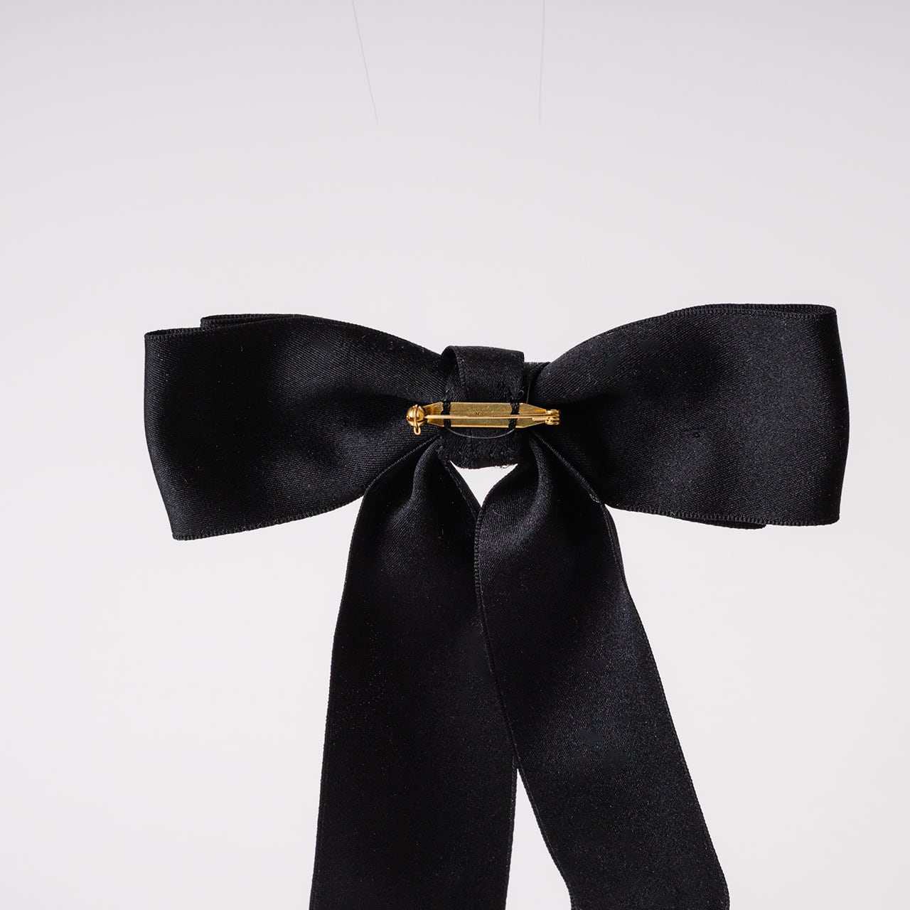 シルクの艶を生かして仕立てた、クラシックなリボンブローチ。