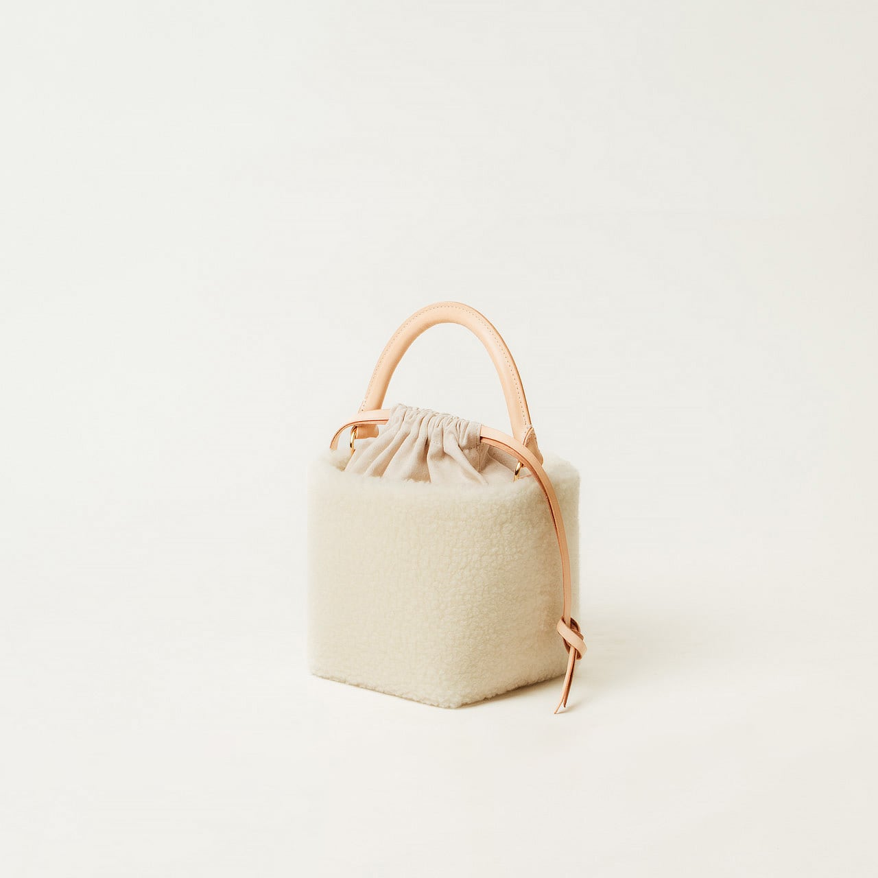 ワンハンドルには、しっとりとしたヌメ革を。本体には、オーストラリア産メリノウールを使用。