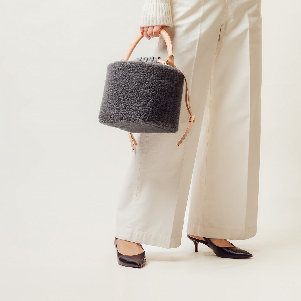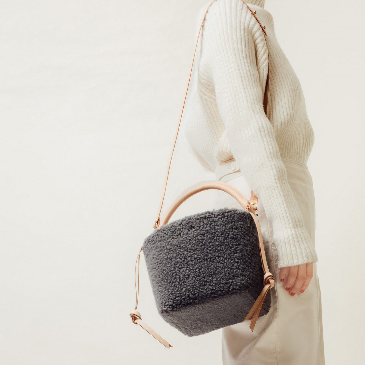 ワンハンドルには、しっとりとしたヌメ革を。本体には、オーストラリア産メリノウールを使用。