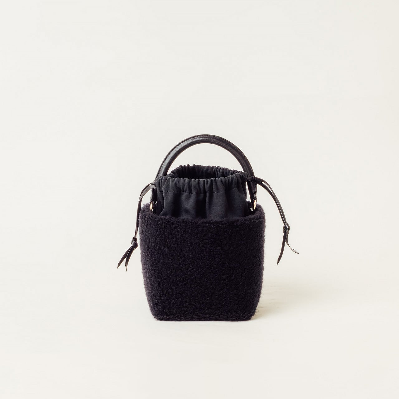 ワンハンドルには、しっとりとしたヌメ革を。本体には、オーストラリア産メリノウールを使用。