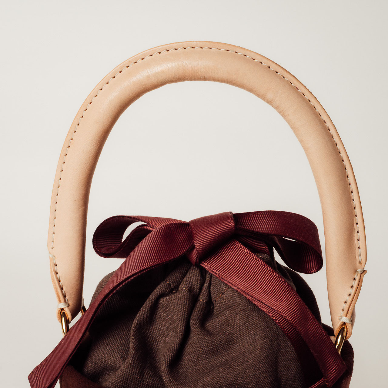 巾着仕様で中が見えず、装いに自然な品を添えます。