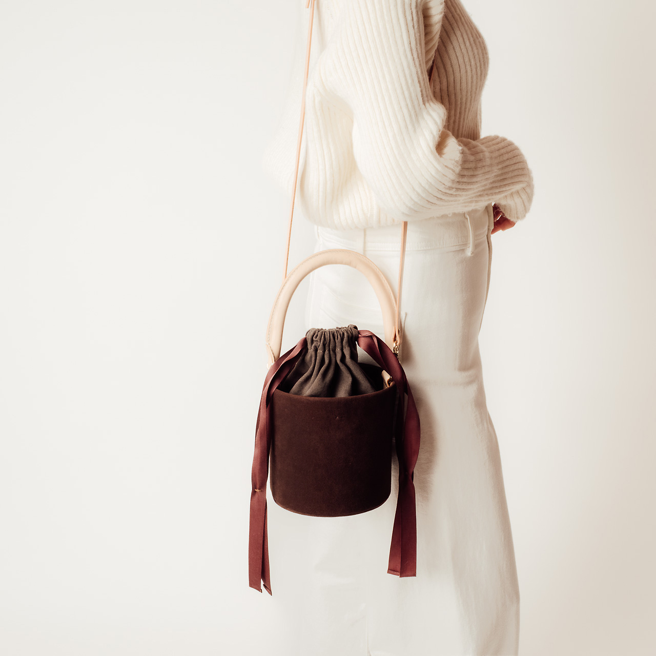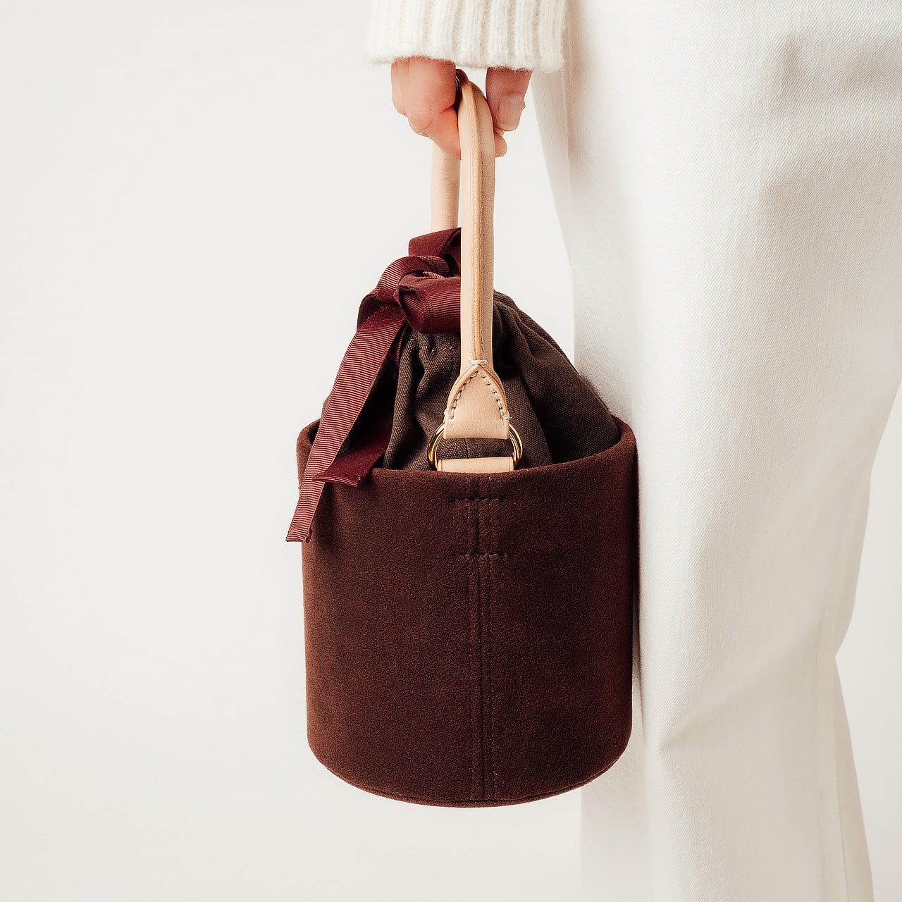 コンパクトなフォルムに、必要なものを美しく収めるバケットバッグ。