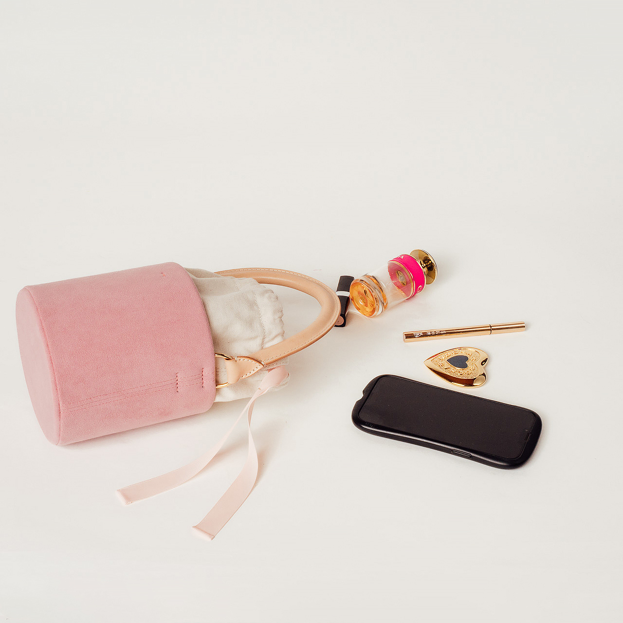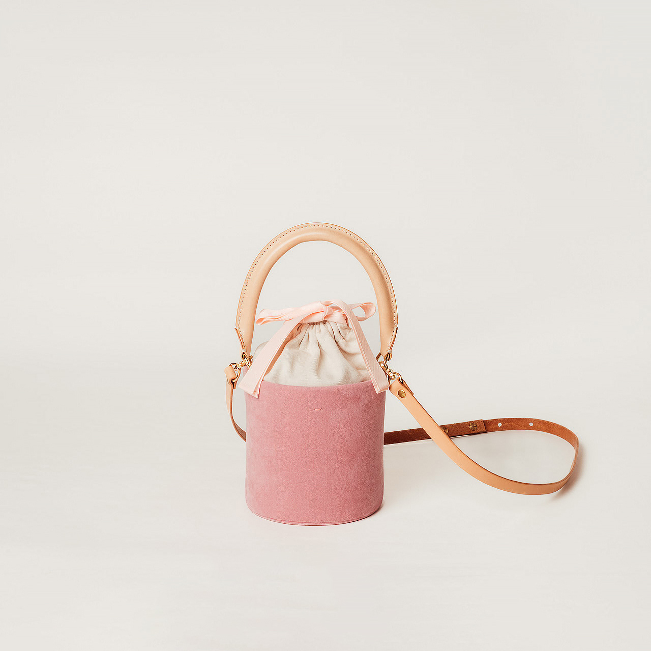 コンパクトなフォルムに、必要なものを美しく収めるバケットバッグ。